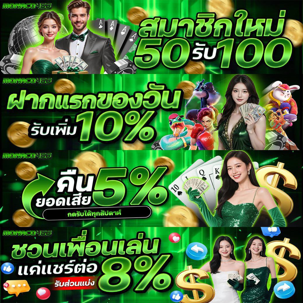 ทุกเกมบน monaco456 ผ่านการรับรองมาตรฐานจากหน่วยงานระดับสากล มีความยุติธรรมและโปร่งใส พร้อมระบบฝาก-ถอนอัตโนมัติที่รวดเร็วตลอด 24 ชั่วโมง คุณสามารถเริ่มต้นเดิมพันได้ด้วยเงินเพียง 1 บาท และมีโปรโมชั่นพิเศษมากมายให้เลือกรับ ทั้งโบนัสต้อนรับสมาชิกใหม่ โบนัสเติมเงิน และเครดิตฟรี